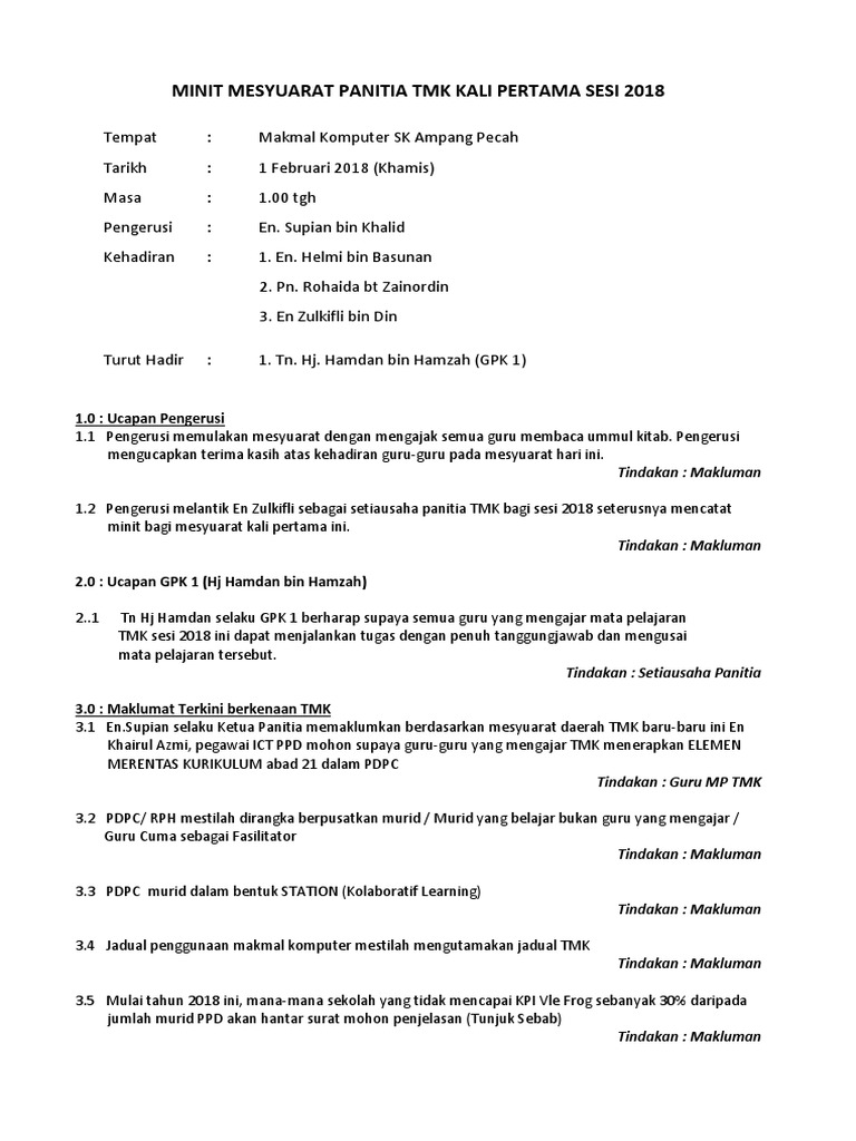 Minit Mesyuarat Tmk Kali Kedua / Silalah download dan gunakan ia setiap kali anda dikehendaki membuat minit mesyuarat.