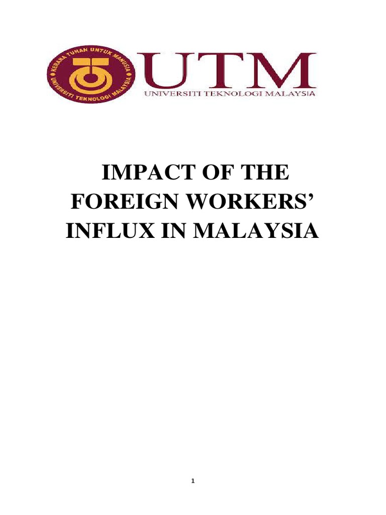 Universiti kebangsaan malaysia, selangor, malaysia. (2006) elasticity of substitutions between foreign and local workers in the malaysian manufacturing. Generally speaking, the foreign workers' biggest contribution to the malaysian economy is by supplying a cheaper work force and for that reason keeping however many are of the thoughts and opinions that the influx of overseas workers has impacted the nation's economy negatively. A q&a with world bank economist dilip ratha on the job losses and travel restrictions affecting migrants the question about how many migrants are too many in an economy becomes almost irrelevant the moment you look at economies of the gcc. Over the longer term, as malaysia.